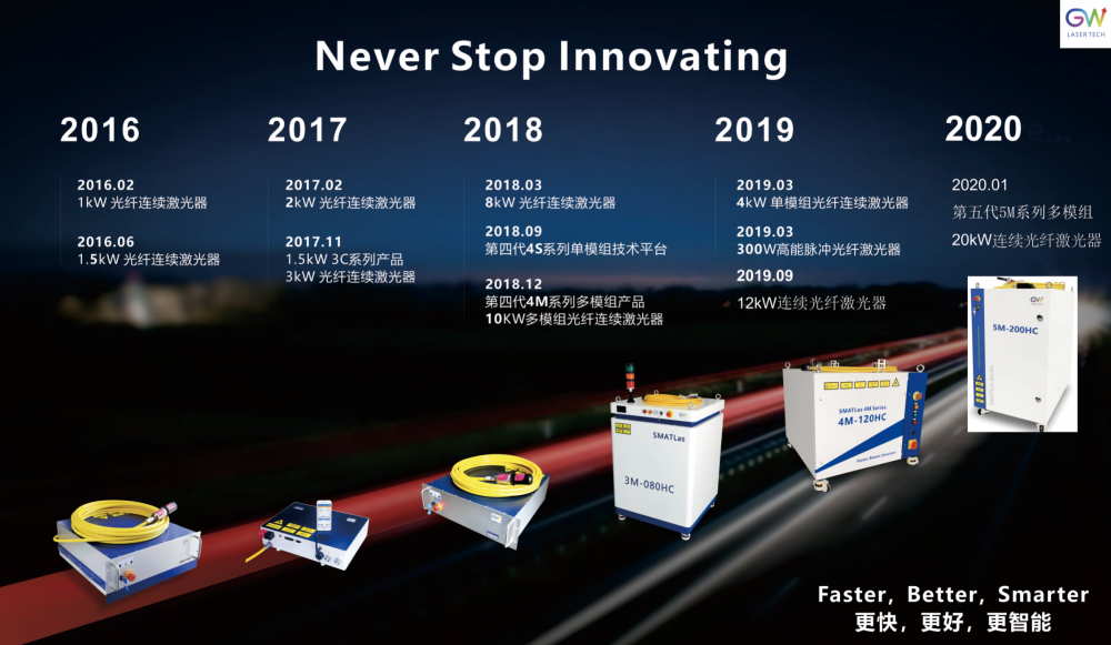 2012-2020年陸續在國內規模化應用千瓦級光纖激光器于薄板激光切割以及2020至今的中厚板的激光切割;