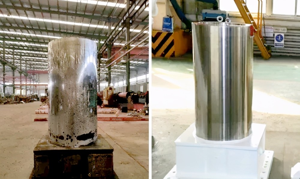 8月18日,在晉能控股裝備制造集團金鼎公司壓裂設備分公司高大寬敞的廠房內,只見光束瞬間閃動,技術工人正在對一件嚴重腐蝕、重度磨損的煤礦液壓支架立柱進行修復處理。經激光熔覆技術修復處理后,支架立柱表面泛著亮光,再不見腐朽,且使用壽命比新品還要增加一到兩倍。該技術2021年一經推出,便迅速在煤機市場上廣受歡迎。