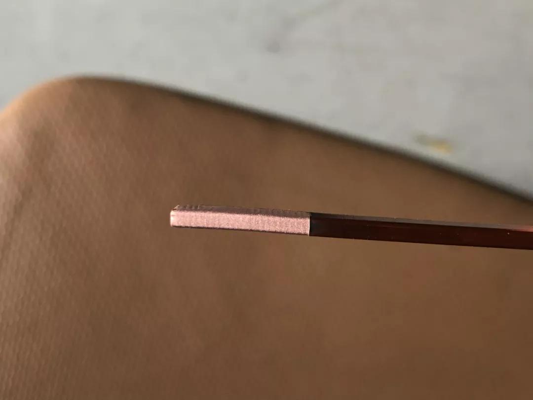 亦可使用CO2光源進行剝漆,由于波長和吸收率的原因,采用CO2光源進行剝離時,不會傷害到基材,表面呈現非常光滑的亮面,但剝離后的端子可能會附著一層薄膜,導致不能完全剝離,使用測電筆測試剝離面時,可能會出現不導通的狀態。