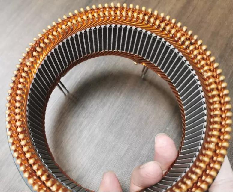 驅動電機是新能源汽車核心部件之一,Hairpin電機,顧名思義,就是“發卡”電機;當驅動電機從傳統的圓漆包線結構變成扁銅線結構時,定子繞組的形狀也變了,變得像發卡。在制造定子時,先把繞組做成像發卡一樣的形狀,再穿進定子槽內,從另一端穿出,并將發卡的端部焊接起來。