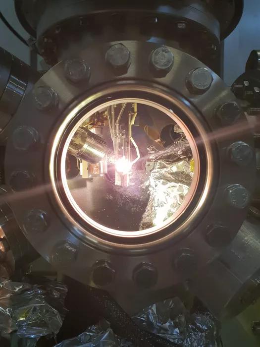 實(shí)驗(yàn)過程中保持樣品恒溫的發(fā)光燈絲。來源:HZB