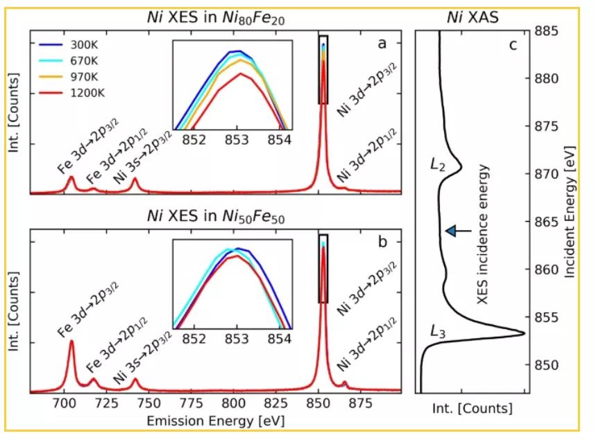 鎳的溫度相關(guān)XES圖