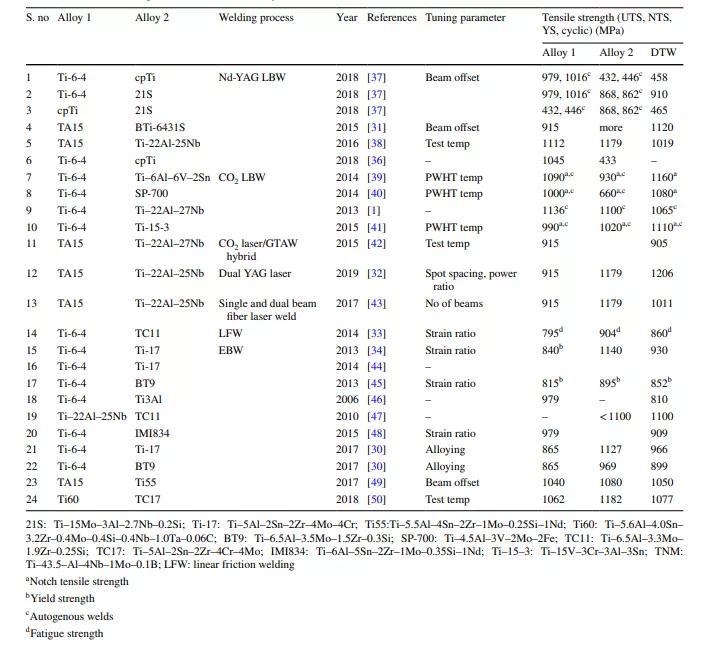 來源:Infuence of welding processon the properties of dissimilar titanium alloy weldments:a review,JMST Advances (2020) 2:61–76,10.1007/s42791-020-00034-4