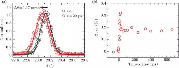 ▲ 在光泵浦下超快 X 射線衍射信號隨延時的變化