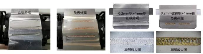 采用杰普特單模CW-2000W、多模CW-6000W、輸出光束可調(AOB)連續光纖激光器系列產品可實現不同厚度的銅鋁極耳焊接,焊點/焊縫形態穩定、無氣孔、爆點等缺陷,凸起高度≤0.3mm、拉力≥300N、殘留≥80%、阻值≤0.3Ω。