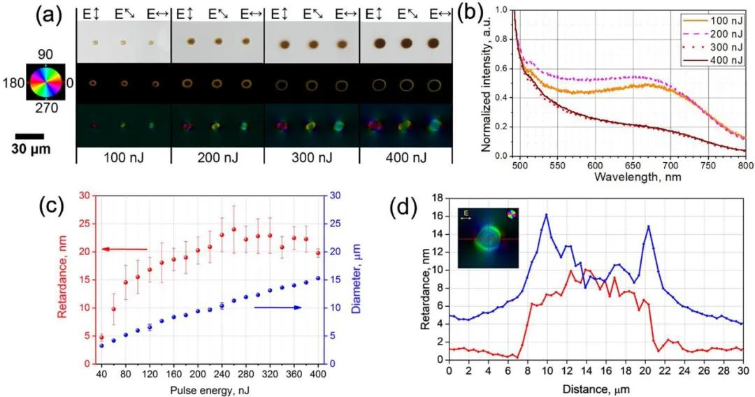 本研究重點(diǎn)分析了激光書(shū)寫(xiě)微疇的內(nèi)部結(jié)構(gòu),首次揭示了它們的偏振敏感光學(xué)特性。