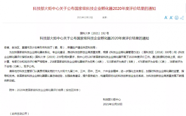 12月13日,科技部火炬中心發(fā)布的《科技部火炬中心關(guān)于公布國家級科技企業(yè)孵化器2020年度評價結(jié)果的通知》,全國參評的1287個國家級科技企業(yè)孵化器中258家被評為優(yōu)秀(A類),廣州市晟龍工業(yè)設(shè)計科技園發(fā)展有限公司孵化器(廣州市3D打印產(chǎn)業(yè)園)位列其中,祝賀園區(qū)連續(xù)三年被評為國家級科技企業(yè)孵化器A級!