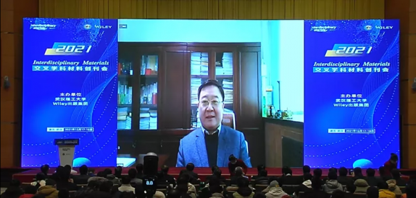 12月18日,Interdisciplinary Materials交叉學科材料創刊會在武漢召開。本次創刊會由武漢理工大學和Wiley出版集團聯合主辦,采取線下與線上相結合的方式進行。國家自然科學基金委員會副主任高瑞平研究員,中國科學院趙東元院士、江雷院士、魏炳波院士、鄒志剛院士、謝毅院士、趙宇亮院士、張躍院士、俞書宏院士、孫軍院士,中國工程院徐惠彬院士、李言榮院士、周濟院士、聶祚仁院士,Wiley出版集團物質科學出版總監徐廣臣博士及期刊部分編委會成員出席,武漢理工大學楊宗凱校長,中國工程院姜德生院士、中國科學院張清杰院士、中國工程院張聯盟院士、傅正義院士,王發洲副校長及部分師生代表參加。會議開幕式由武漢理工大學吳超仲副校長主持。