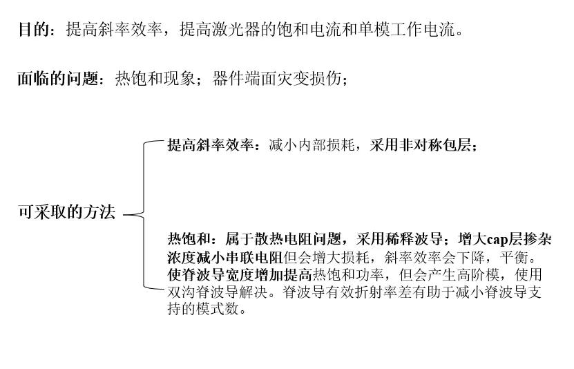 還有一些其他的大功率的半導(dǎo)體激光器,一是采用大光腔結(jié)構(gòu),波導(dǎo)寬度很寬,二是FP的一些激光器,三是采用外腔的激光器,用一些分立的透鏡光柵之類(lèi)的。
