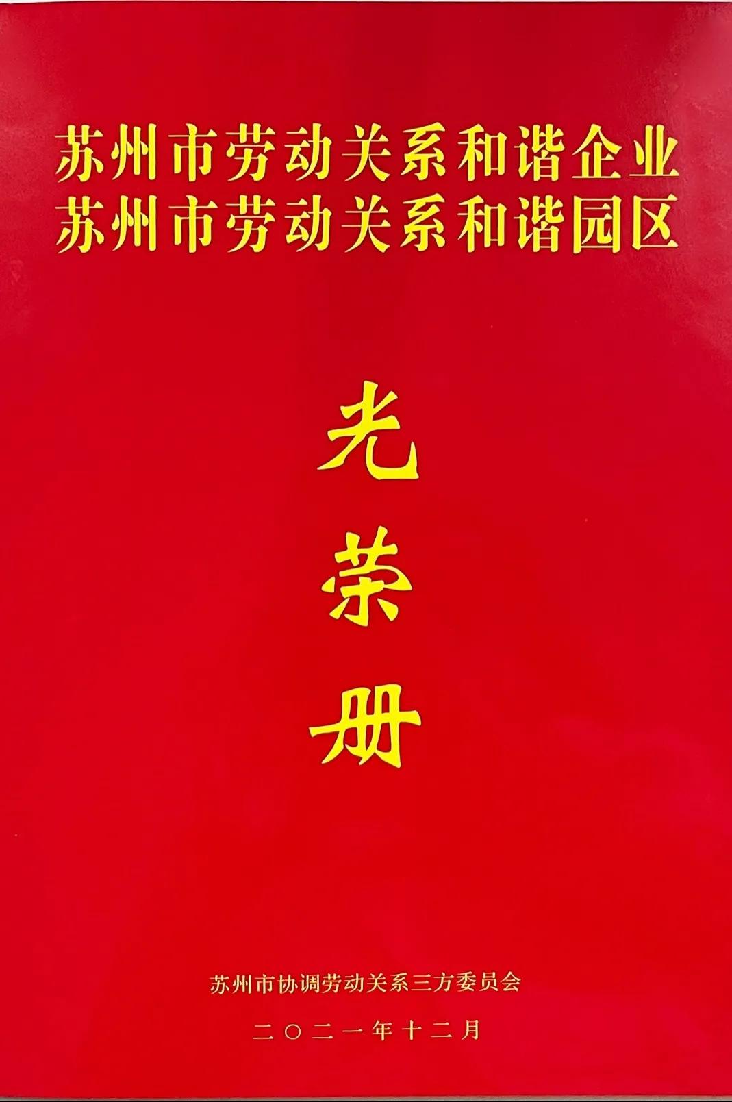 蘇州市勞動(dòng)關(guān)系和諧企業(yè)光榮冊(cè)