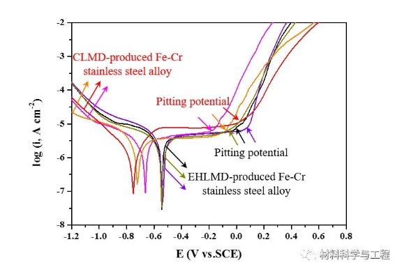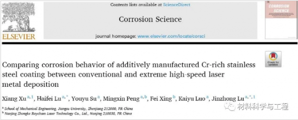 金屬材料的腐蝕失效通常起源于材料表面受到腐蝕介質侵蝕產生破壞,因此材料表面的改性和強化涂層的制備發揮重要作用。近年來,激光沉積技術發展迅猛,可以在廉價金屬基體表面制備高性能的涂層,具有很高的經濟效益,廣泛應用于機械設備和重要零部件的表面強化和損傷修復等。但是傳統激光沉積稀釋較大,沉積效率低,且表面粗糙度較高,需要后續車削、磨削加工才可以投入使用,限制了其在大型工程構件的應用的推廣。德國弗勞恩霍夫激光技術研究所提出一種全新的激光表面增材制造技術——超高速激光沉積(EHLMD),有效地解決了沉積效率和表面平整性的問題。通過同步送粉添料方式,利用高能密度的束流使添加材料與高速率運動的基體材料表面同時熔化,并快速凝固后形成稀釋率極低,與基體呈冶金結合的沉積層,極大提高沉積速率,顯著改善基體表面的耐磨耐蝕性能。因此,制備具有優良耐腐蝕性能的超高速激光沉積涂層具有重要意義。本研究中,江蘇大學的徐祥博士(第一作者)和魯金忠教授(通訊作者)等人系統性地從沉積層致密性、顯微組織特征和抗腐蝕性能影響機理對比分析了超高速激光沉積(EHLMD)和傳統激光沉積(CLMD)制備的沉積層的耐腐蝕性能。通過Micro-CT、OM、EBSD和TEM分析,分別對兩種工藝制備的不銹鋼沉積層進行了表征,通過三電極電化學工作站對沉積層在室溫下0.598mol/L NaCl溶液中的耐腐蝕性能進行測試。結果表明超高速激光沉積層細化的組織特征和更高的致密性形成穩定可靠的鈍化膜,表現出優異的耐腐蝕性能。相關論文以題為“Comparing corrosion behavior of additively manufactured Cr-rich stainless steel coating between conventional and extreme high-speed laser metal deposition”發表在腐蝕頂刊Corrosion Science。https://doi.org/10.1016/j.corsci.2021.109976