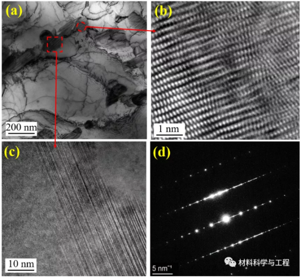 CLMD涂層的晶粒尺寸為4~ 48 μm,平均值為14.65μm,遠遠大于EHLMD涂層的晶粒尺寸(小于3μm,平均值為1.15μm)。CLMD和EHLMD涂層的微觀結構均以大角度晶界為主。但是,EHLMD涂層中小角度晶界的體積分數高于CLMD涂層。此外,在EHLMD極快的凝固過程中,元素偏析導致合金亞晶界元素的錯位富集,從而產生部分高濃度位錯。在EHLMD涂層中還發現了位錯滑移和層錯堆垛結構。
