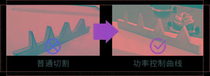 根據切割輪廓自動調整功率、速度、占空比、焦點位置等關鍵參數,保證切割質量及加工效率。(該功能通過自研系統對激光器出光功率的無級調節、激光頭焦點的實時控制,完美結合而實現。)