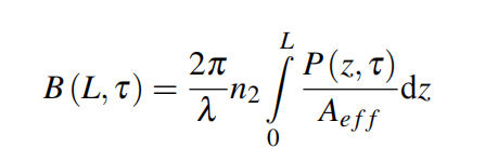 在脈沖光纖激光器中,影響峰值功率最重要的因素是B積分,也就是光纖中的非線性相位偏移量,B積分的定義如下: