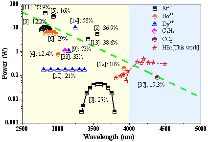 圖 1:中紅外光纖連續(xù)波激光發(fā)展現(xiàn)狀