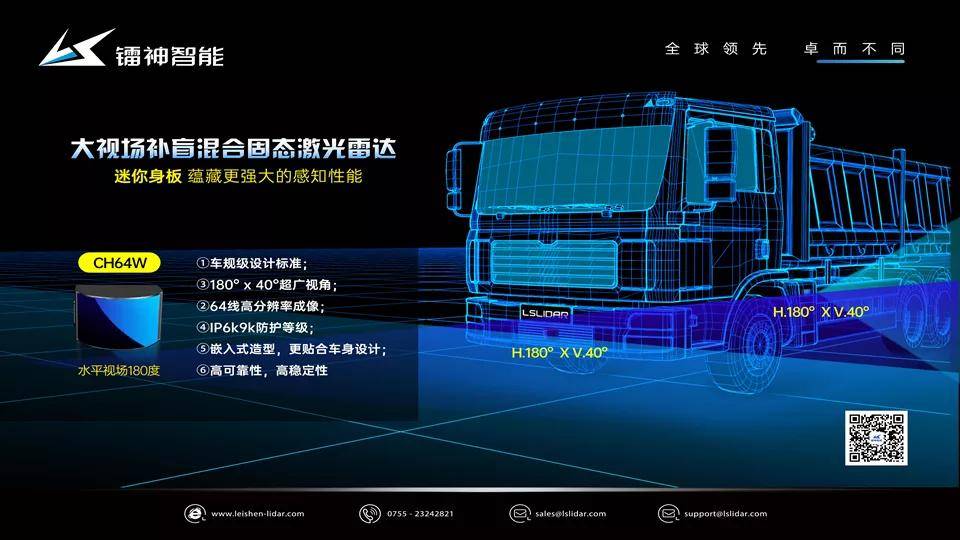 鐳神智能另一重磅新品——大視場補盲激光雷達CH64W,作為專為掃除盲區設計的產品,CH64W可應用在汽車、機器人、AGV等領域的行駛盲區監測,其擁有180°x 40°的超廣水平視場角,測量精度精確至±3cm,能夠高效識別近距離范圍內的障礙物。與鐳神智能其他功能的激光雷達組合搭配,適配不同應用需求,提供更精確、全面的監測感知。