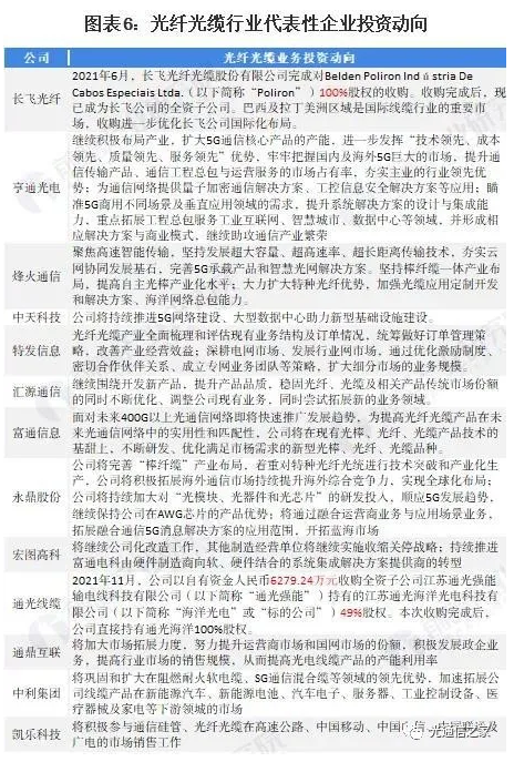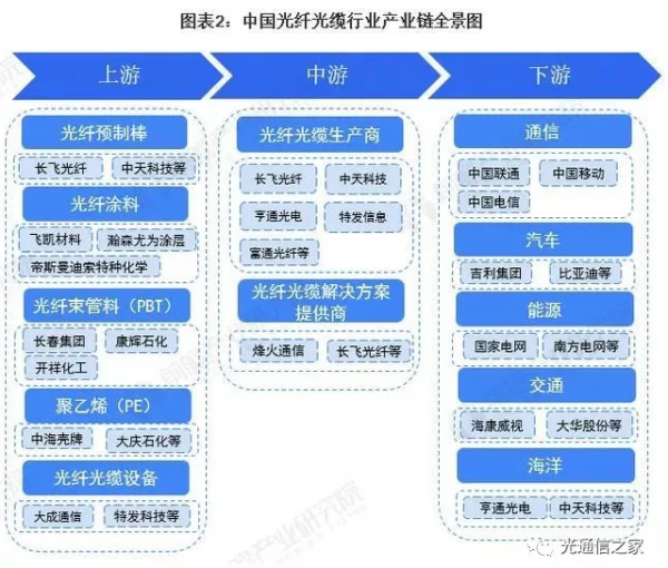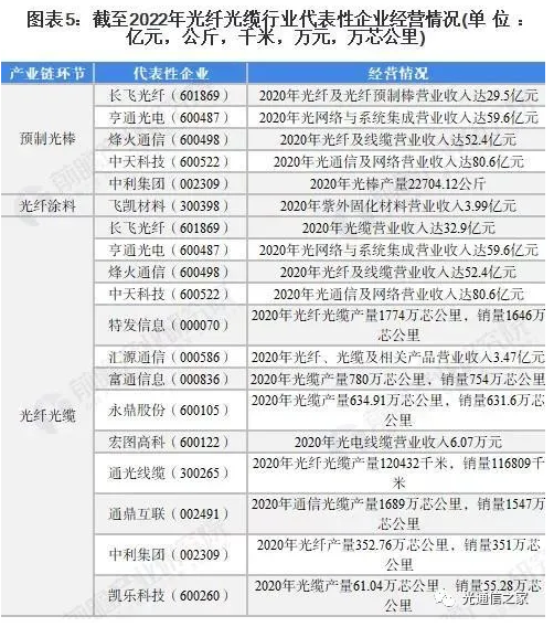 光纖光纜產(chǎn)業(yè)主要上市公司:長飛光纖(601869)、亨通光電(600487)、烽火通信(600498)、中天科技(600522)永鼎股份(600105)、通鼎互聯(lián)(002491)、中利集團(tuán)(002309)等 本文核心數(shù)據(jù):光纖光纜行業(yè)產(chǎn)業(yè)鏈全景圖、區(qū)域熱力地圖、代表性企業(yè)經(jīng)營情況、業(yè)務(wù)規(guī)劃 光纖光纜行業(yè)產(chǎn)業(yè)鏈全景梳理:中游為光纖光纜生產(chǎn)與解決方案的提供 光纖光纜的上游主要有光纖預(yù)制棒(由光纖材料如四氯化鍺、特種氣體等加工而成)、光纖涂料(主要應(yīng)用于光纖預(yù)制棒后的拉絲工藝中)、光纖束管料(束管式光纖材料)、聚乙烯(光纜產(chǎn)品內(nèi)外護(hù)套材料)、光纖光纜生產(chǎn)設(shè)備等,其中預(yù)制棒是重要原材料; 產(chǎn)業(yè)中游是光纖光纜的生產(chǎn)與解決方案的提供; 下游應(yīng)用領(lǐng)域包括通信行業(yè)、汽車行業(yè)、能源行業(yè)、軌道交通行業(yè)(智慧交通)、海洋經(jīng)濟(jì)領(lǐng)域(海底光纜)等。光纖光纜集采需求量的80%以上都來自通信行業(yè),而近年來的“光進(jìn)銅退”更是助推著光纖光纜行業(yè)的向前發(fā)展。 在光纖光纜上游行業(yè)中,各原材料或設(shè)備行業(yè)均有代表性企業(yè)。其中,光纖預(yù)制棒代表性企業(yè)有長飛光纖、中天科技等;光纖涂料代表性企業(yè)有飛凱材料、瀚森尤為涂層等;光纖束管料(PBT)代表性企業(yè)有長春集團(tuán)、康輝石化等;聚乙烯代表性企業(yè)有中海殼牌、大慶石化等;光纖光纜設(shè)備代表性企業(yè)有大成通信、特發(fā)科技等。 中游光纖光纜代表性生產(chǎn)商有長飛光纖、亨通光電、中天科技、特發(fā)信息、富通光纖等;代表性解決方案提供商有烽火通信、長飛光纖等。下游代表性企業(yè)包括下游行業(yè)的領(lǐng)先企業(yè)。 光纖光纜行業(yè)產(chǎn)業(yè)鏈區(qū)域熱力地圖:主要分布于江蘇與湖北 根據(jù)企查貓的數(shù)據(jù),我國光纖光纜行業(yè)企業(yè)數(shù)量眾多,截至2022年1月,行業(yè)內(nèi)在業(yè)/存續(xù)企業(yè)超過3.9萬家,企業(yè)分布呈現(xiàn)一定區(qū)域集群特征,企業(yè)分布數(shù)量最多的省份分別為江蘇、廣東與山東。 從代表性企業(yè)分布情況來看,光纖光纜行業(yè)代表性企業(yè)分布于江蘇、湖北、廣東、上海、天津等地,其中,江蘇、湖北在產(chǎn)業(yè)鏈上、中游均有行業(yè)內(nèi)上市企業(yè)。 光纖光纜產(chǎn)業(yè)鏈代表性企業(yè)經(jīng)營情況 從光纖光纜企業(yè)經(jīng)營情況來看,長飛光纖、亨通光電、烽火通信、中天科技等在光纖光纜營收方面名列前茅。特發(fā)信息、通鼎互聯(lián)光纖光纜的產(chǎn)量較大。光纖光纜產(chǎn)業(yè)鏈上的其它代表性企業(yè)經(jīng)營情況如下: 光纖光纜行業(yè)代表性企業(yè)投資動向 投資動向方面,光纖光纜主要生產(chǎn)企業(yè)主要投資方向從產(chǎn)品到全球布局。其中,作為光纖光纜產(chǎn)業(yè)的龍頭長飛光纖未來將強(qiáng)化主業(yè)成本效率及技術(shù)創(chuàng)新的國際領(lǐng)先優(yōu)勢,同時加大多元化及國際化的拓展力度。 以上數(shù)據(jù)參考前瞻產(chǎn)業(yè)研究院《中國光纖光纜行業(yè)市場前瞻與投資戰(zhàn)略規(guī)劃分析報(bào)告》,同時前瞻產(chǎn)業(yè)研究院還提供產(chǎn)業(yè)大數(shù)據(jù)、產(chǎn)業(yè)研究、產(chǎn)業(yè)鏈咨詢、產(chǎn)業(yè)圖譜、產(chǎn)業(yè)規(guī)劃、園區(qū)規(guī)劃、產(chǎn)業(yè)招商引資、IPO募投可研、IPO業(yè)務(wù)與技術(shù)撰寫、IPO工作底稿咨詢等解決方案。