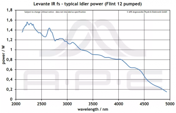 Levante IR fs OPO主要技術指標(12W泵浦):