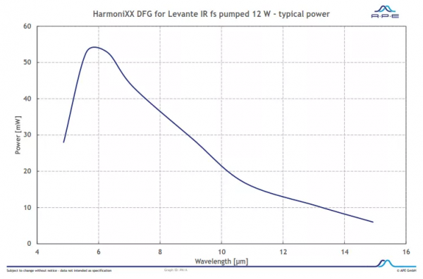 利用LeVante IR fs OPO的Signal和Idler光的調諧性能,APE公司的HarmoniXX DGF系統有非常好的調諧性能和效率,可以輸出4-15μm寬可調諧范圍,是顯微光學,材料學,電子學研究的理想光源!