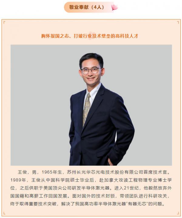 近日,江蘇省文明辦發布了2022年2月“江蘇好人榜”名單,長光華芯首席技術官兼常務副總王俊博士入選敬業奉獻“江蘇好人”。