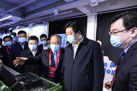 領(lǐng)導(dǎo)及嘉賓參觀科創(chuàng)中心合作企業(yè)專題展。