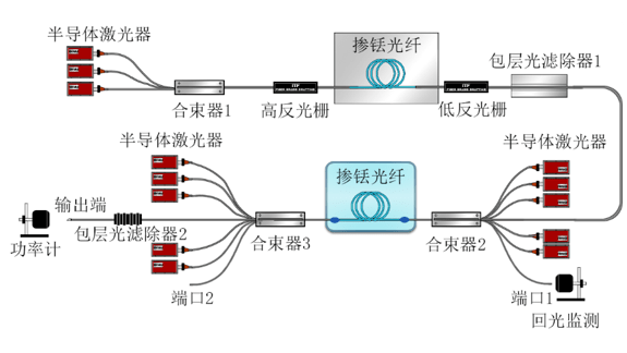 圖 3 530W雙端泵浦摻銩全光纖MOPA系統結構圖