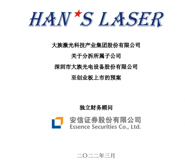 大族激光3月8日晚間公告正式宣布,公司擬將控股子公司大族光電分拆至深交所創業板上市。截至本預案公告日,大族激光直接持有大族光電59.28%股份,為大族光電控股股東。分拆完成后,公司股權結構不會發生變化,且仍將維持對大族光電的控制權。