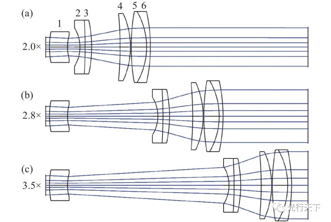 本文設計一款收發一體的激光測距光學系統,在激光波長選擇上使用1550nm的光通信波段,該波長不僅擁有更好的大氣透過率,還具備人眼安全的優勢,可應用于人口密集的場合。同時,充分利用光纖接口的低背景噪聲優勢,使用單模光纖作為激光束的發射端口。為有效解決傳統系統非共軸帶來的接收視野盲區問題,發射系統與接收系統共用擴束光路。最后為適應不同距離的測量,兼顧系統的可調節能力,將擴束光路做成變倍結構。本文設計、優化的光學系統,將為后續工程樣機的研制提供理論和實驗基礎。