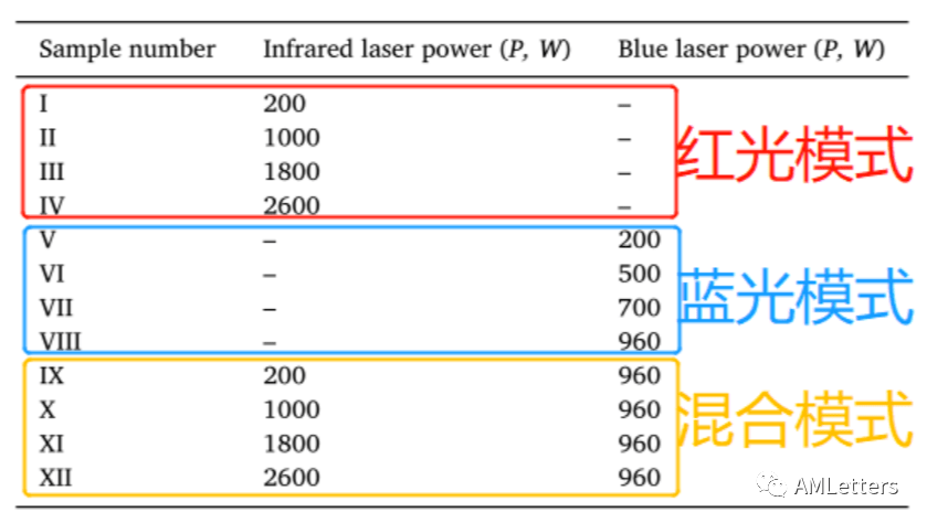 (2)高反金屬對紅外激光的吸收率低,所以加工時需要較高的功率,但高功率的激光會導致熔池穩定性較差。藍光激光的波長較短,高反金屬對其的吸收率高,但藍色激光器的功率較低,導致零件的致密度較差。通過將高功率紅外激光和低功率藍色激光復合,可以有效解決以上兩個問題。