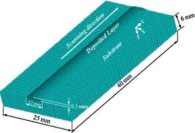 LC技術是一個復雜的過程,通過實驗研究無法理解激光與材料的相互作用、粉末流動、熔池和傳熱模式。因此,使用基于數值的模型來解決復雜的數學模型。這些模型的結果通常是精確的,可以用于實現高質量的CLAD。數值模型通常分為三個部分:熔池、熔覆特征和粉末流動動力學。為了改善包層特性,Anas等人開發了一個數值模型,使用COMSOL Multiphysics優化包層特性,并將其與實驗結果進行了比較。結果表明,長寬比誤差為13.95%,包層角誤差為6.10%,稀釋率誤差為1.72%。LC-HEAC的熱動力學和熱機械行為與普通覆層不同,并通過數值模擬進行了研究。