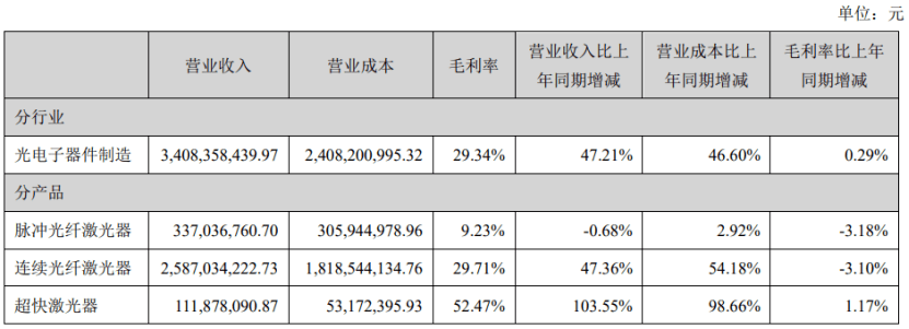 連續光纖激光器營收25.87億元 超高功率均已正式銷售