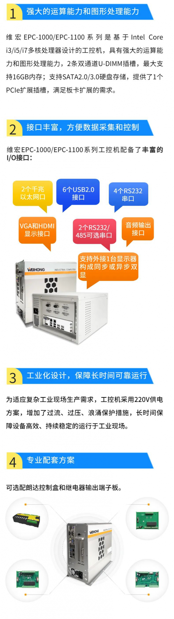 維宏EPC-1000/EPC-1100系列工控機憑借優異性能、豐富功能為工業設備提供強有力的控制大腦。