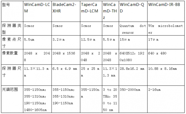 針對激光焦點的光斑測試需求,Dataray公司可以提供兩類光斑測試儀,一類是基于SCMOS相機的光斑測試儀,一類是基于狹縫掃描的光斑輪廓儀。Dataray公司基于相機的光斑輪廓儀的主要參數