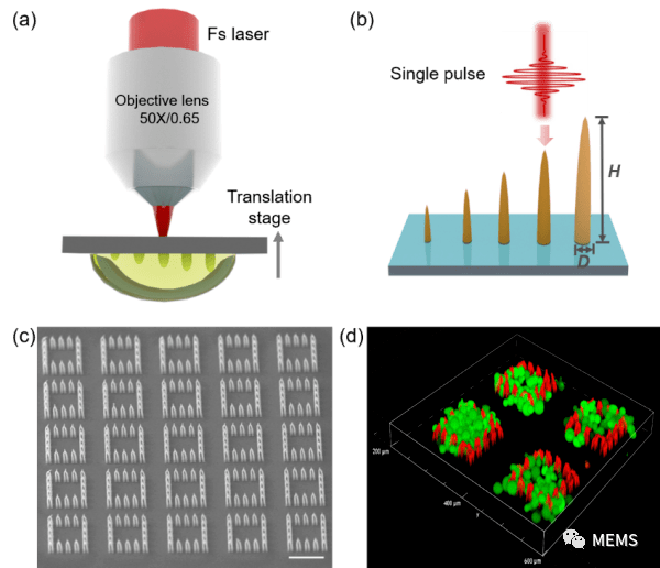 據麥姆斯咨詢報道,近日,中國科學院沈陽自動化研究所在飛秒激光微納加工及生物學應用取得新進展。飛秒激光微納加工與雙光子4D打印是微納米機器人課題組新開辟的研究方向,旨在利用飛秒激光超快加工開展生物界面調控與柔性腦機接口研究,為生命科學和腦科學研究提供新的使能技術。