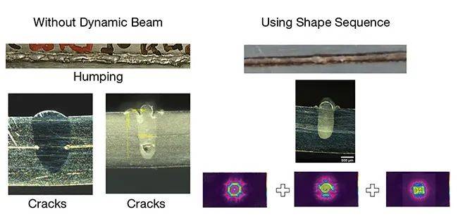 在焊接操作時,動態光束形狀控制著材料的熔池和熱等離子體匙孔(小孔)。當光束移動到焊縫的下線時,材料從固態到液態到氣態,然后再反向進行凝固。通過精確的控制熔池和減少附屬物的飛濺,再凝固,在材料的理想狀態凝固,從而形成高質量的焊縫。