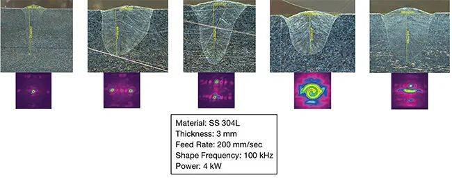 圖4 動態光束調整時使用一種快速的優化不同的焊接工藝的技術,使用的是測試多個設置步驟來確定的光束形態對焊縫的影響。