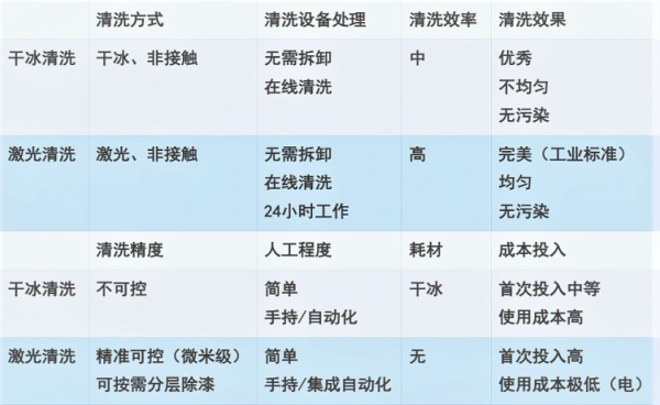 提高效率與性價比是開拓激光清洗藍海市場的關鍵。金博士舉例說:目前常用的噴砂清洗,若是密閉箱里進行小功率噴砂污染相對較小,若是在開放空間進行大功率噴砂,會給周圍居民帶來巨大的揚塵困擾。同時,其對人體健康的損害也很嚴重,矽肺是噴砂工人的常見職業(yè)病。酸洗是目前工業(yè)應用最多的清洗方式,會有清洗劑殘留,主要污染物為各級水洗過程產(chǎn)生的清洗廢水。激光清洗相對于酸洗法而言工藝流程極簡,可以同時進行除油、除氧化層和除銹的清洗工作,可達到Sa3級的最高工業(yè)清洗等級,對材料表面的硬度、親疏水性等都幾乎沒有損傷。干冰清洗相對也是一種較為環(huán)保的清洗方式,但其弊端在于操作環(huán)境要求嚴格,噪音水平通常超過120分貝,占地面積大,耗材成本高昂。目前國內排名在前20-30名左右的輪胎廠,采用干冰清洗工藝一年的耗材費用接近80-120萬。激光清洗輪胎模具的效果比干冰清洗只會更好,效率更高、效果更佳、對模具無損傷,利潤率也更高。干冰清洗一套輪胎模具要200-300元,而激光清洗一套則只需40-50元。因此這一應用領域激光清洗發(fā)展較為迅速,是完美的輪胎模具清洗方式。