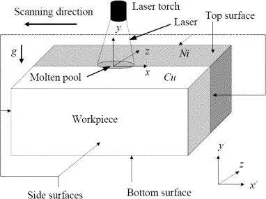 近幾十年來,傳熱和流體流動的計算模型已被用于了解類似金屬焊接應用中溫度場和速度場的演變。He等人研究了在自由表面平坦的假設下,不銹鋼激光點焊過程中溫度場和速度場的演變。數值研究了在硫和氧等表面活性元素存在或不存在的情況下,由熔池表面溫度梯度引起的Marangoni–Benard對流和由熔池內密度變化引起的Rayleigh–Benard對流。使用各種模型研究了合金傳導模式激光焊接中元素蒸發產生的熱量和質量損失。激光加工中固液界面的非平衡凝固性質和溶質分配也得到了解釋。這些模型大多基本遵循固定網格法,采用焓-孔隙率公式來處理固液相變問題。