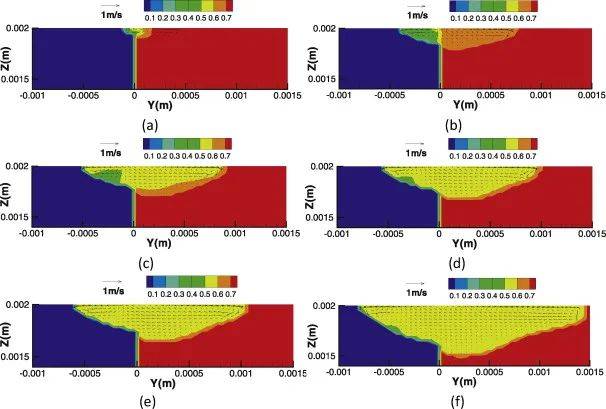 1.假定熔融金屬為牛頓型且不可壓縮,并使用Boussinesq近似來解釋由于溫度和濃度變化引起的密度變化。流體是層流的。