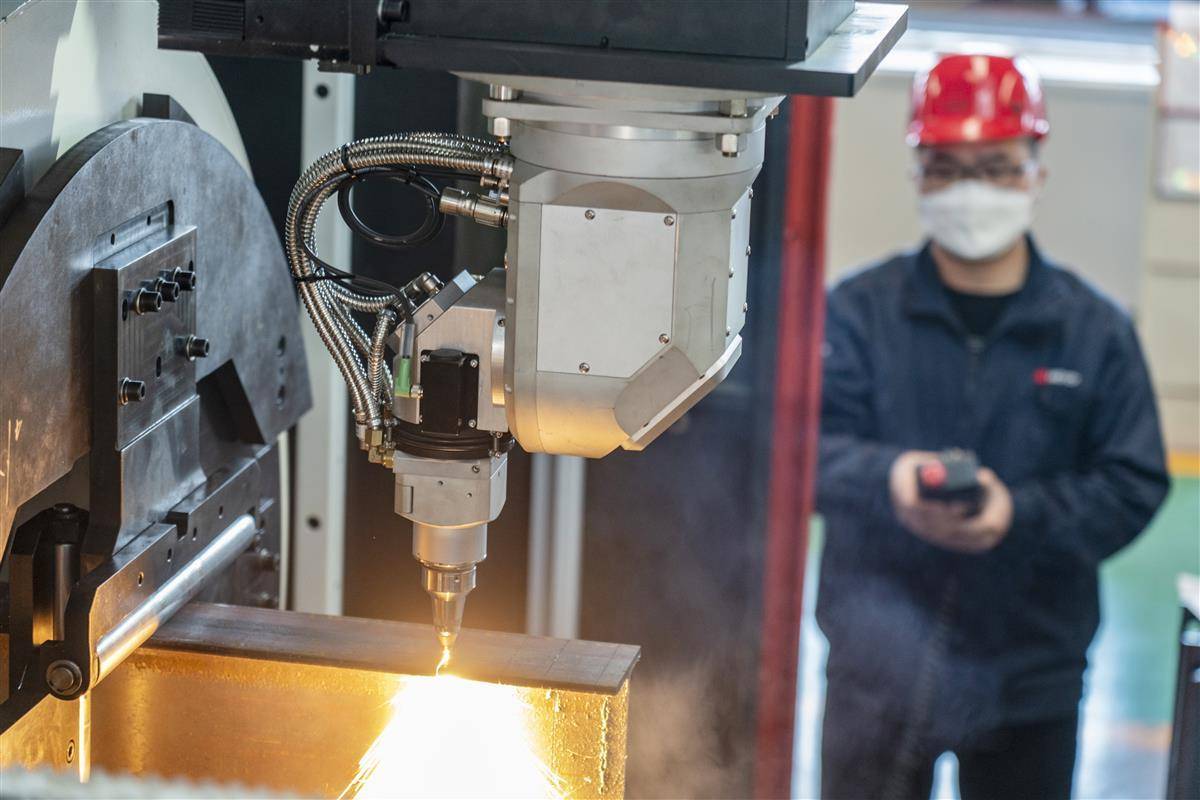 4月28日,華工科技鄂州智能制造產業園,其自主研制的國內首套超重管激光三維加工中心已調試完畢,即將發往一家世界500強企業,運用于大型油管的加工。