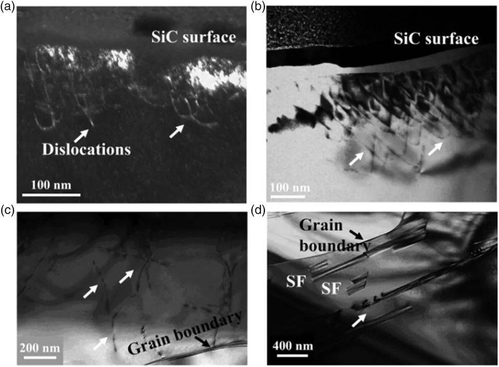 圖31 LSP產生的α-SiC陶瓷中位錯的透射電子顯微鏡圖像。