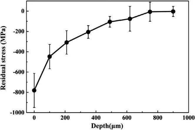 圖32 LSP處理SiC陶瓷的深度殘余應力分布。