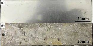 圖4 鋁合金樣品的代表性圖像:(a)海水浸泡前,(b)海水浸泡后,準備進行激光清洗時。