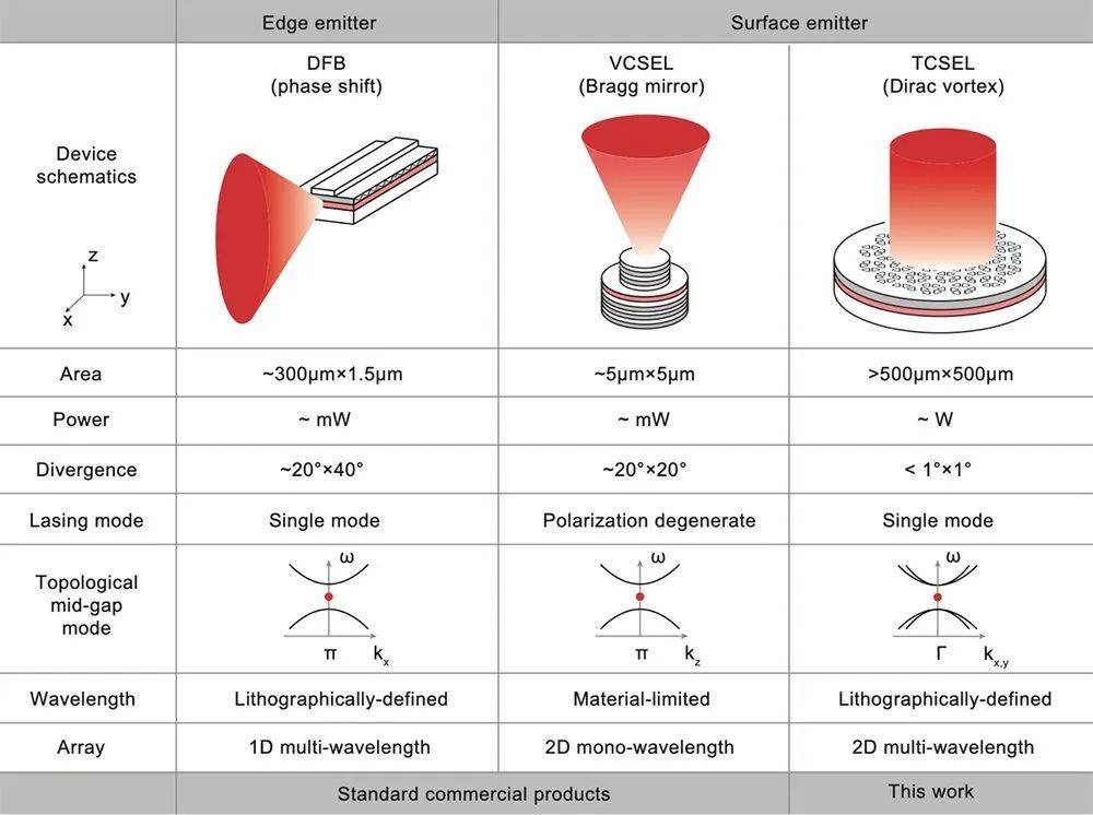 最近,同一團隊將他們的拓撲腔應用于表面發射激光器,并發明了拓撲腔表面發射激光器(TCSEL),其性能可以遠遠超過商業同行。