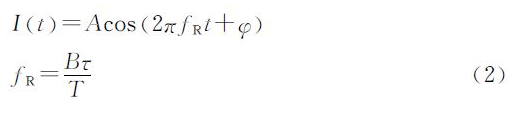 式中,f0為光信號的初始頻率,B為光信號的調制帶寬,T為光信號的調制周期。此時,通過低通濾波后的光電流信號具有如下形式: