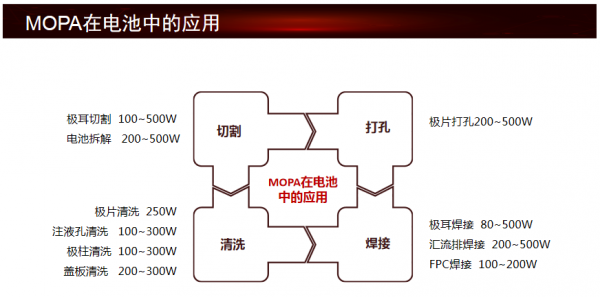 目前,光至科技可提供20W-500W全系列可調(diào)納秒脈沖MOPA激光器,通過配套國(guó)內(nèi)多家主流激光裝備制造商,在新能源領(lǐng)域已經(jīng)深度參與極片高速制片、極耳切割,極片清洗、注液孔清洗、可擦拭黑碼刻蝕及其它新工藝制程的定制化服務(wù)等。