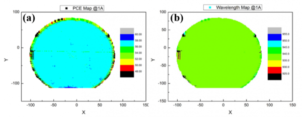 圖11.6吋晶圓VCSEL陣列的均勻性。a)PCE Map,b)波長Map。
