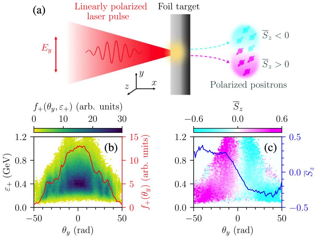 極端強激光與固體靶作用產生極化的高密度正電子束