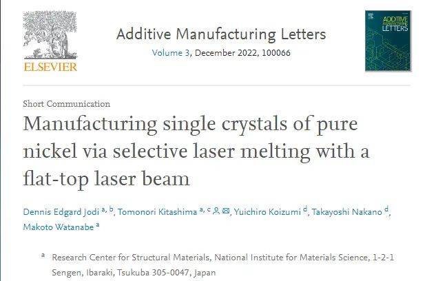 △該團隊的研究結果已發表在Additive Manufacturing Letters,題目為《通過平頂激光束選擇性激光熔化制造純鎳單晶體》https://www.nanjixiong.com/thread-155903-1-1.html