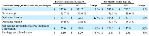 按產品種類劃分,由于中國對高功率切割應用的需求下降,IPG高功率連續波(CW)激光器的收入同比下降了14%,約占總收入的43%,但這部分下滑被北美和日本市場上焊接和切割應用的強勁增長所抵消。其中,6千瓦以上的超高功率激光器的銷量占高功率連續波激光器總銷量的50%。Scherbakov表示:“本季度在中國的大功率切割業務對IPG總營收的貢獻不到10%。”